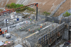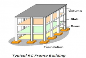 The superstructure is the portion above the plinth level of the building. The main components a super structure of is a column and beam.  The columns are built up to slab level and the frame for further construction is prepared.